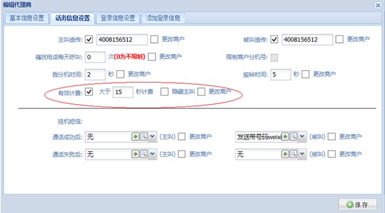 3、推广费和有效计费同时开通:扣费规则,有效时长内的成功电话和未接通都电话都不扣推广费和话费,超出有效时长的成功电话扣推广费和话费。