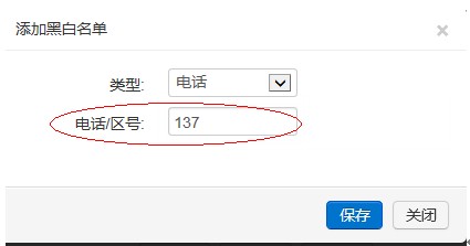 如,屏蔽所有137电话的,可在电话/区号填写“137”。